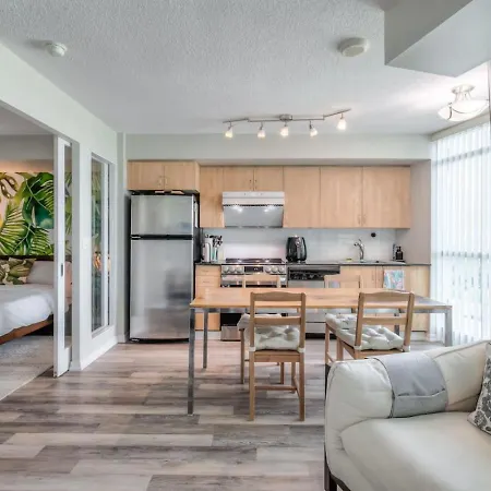 Dit appartement vindt u in het centrum van Toronto. Het Koninklijk Museum van Ontario ligt op circa 3 km afstand en de luchthaven Billy Bishop bevindt zich op 5 km afstand van het appartement. Het Fort York is maar 200 meter van Chic 1Br Plus Den Condo With Fast Wifi And Free Parking genesteld.